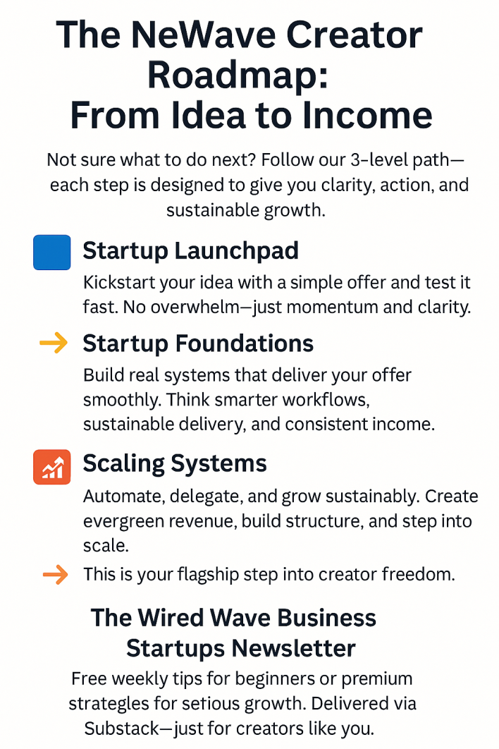 Start exploring free modules on budgeting, branding, and content strategyâall built for emerging creators. Want deeper insights? Unlock advanced tactics with our Wired Wave Business Startups Newsletter, including growth systems, financial plans, and practical marketing workflows.